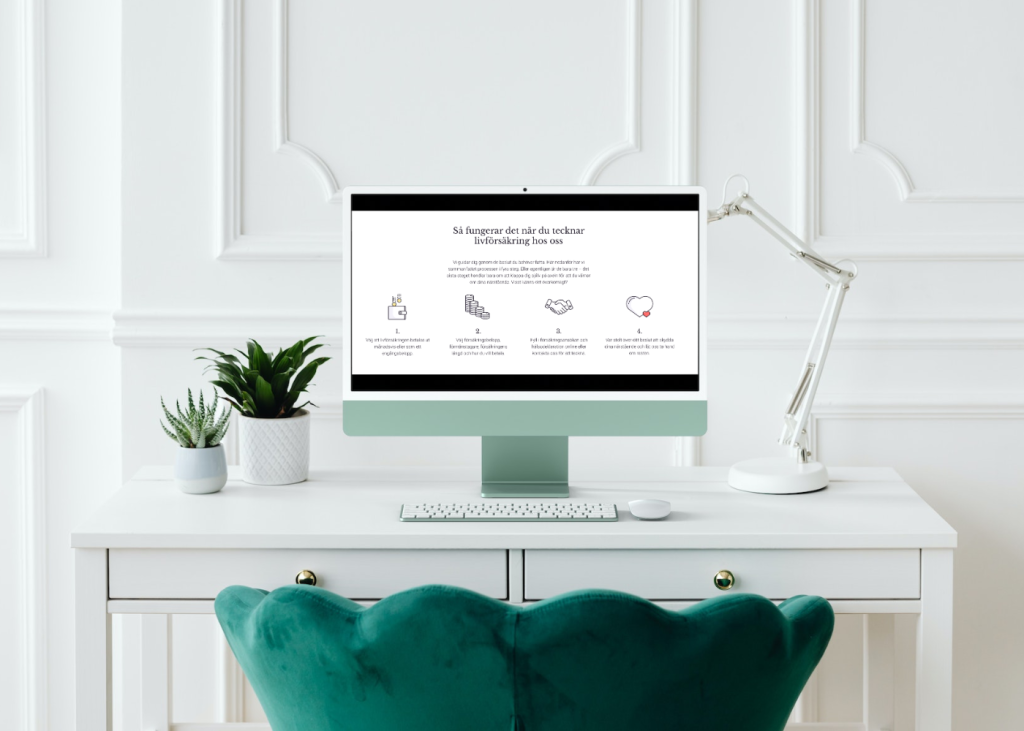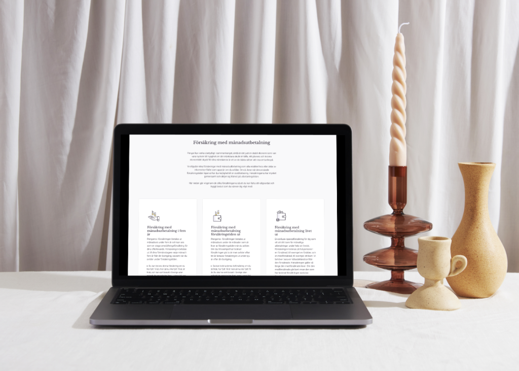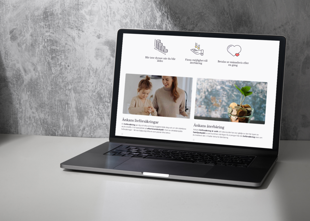Tillsammans med min kollega på Stockholms Skrivbyrå tog jag fram ett koncept, en tonalitetsguide, ett modernare namn och ny copy till en helt ny hemsida. Vi fokuserade mycket på att den nya tonaliteten skulle vara varm, förstående, trygg och vägledande. Syftet var att sänka tröskeln så att målgruppen (30–45 åringar mitt uppe i livspusslet) lätt ska kunna teckna en livförsäkring, oavsett förkunskaper.